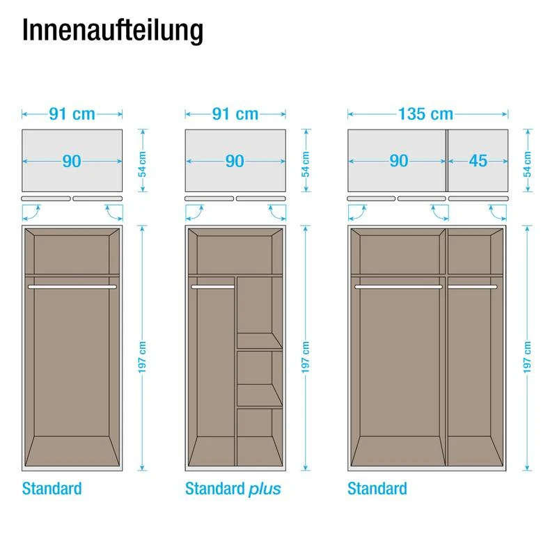 - Standard Plus : 1 tringle à vêtements, 1 étagère continue et 2 petites étagères