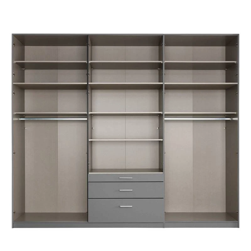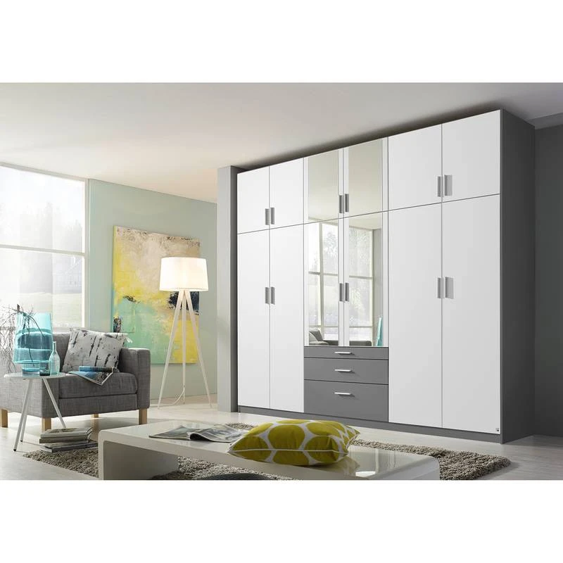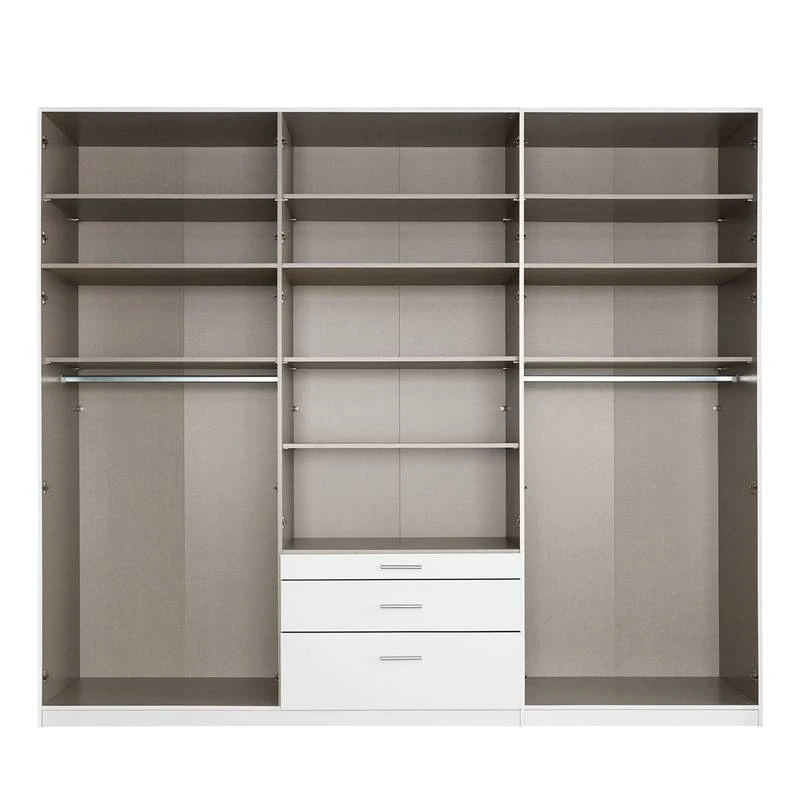 - 8 portes en bois, 4 portes avec miroir, 11 étagères et 2 tringles à vêtements