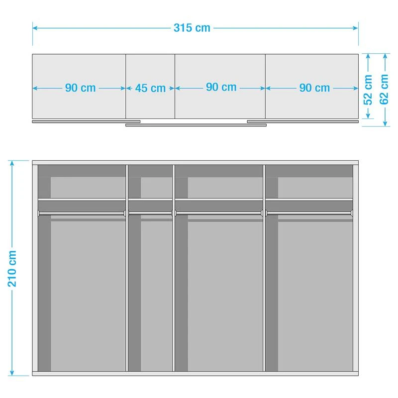 - Hauteur 210 cm : chaque élément d’armoire avec : 1 tablette et 1 tringle à vêtements