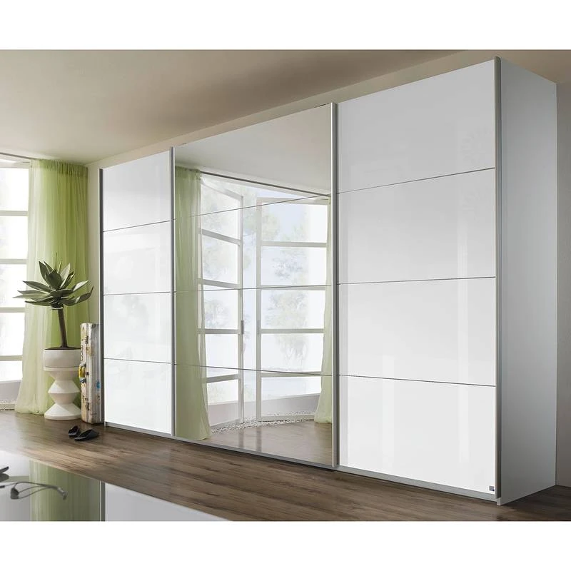 - Armoire à portes coulissantes avec façade partiellement recouverte d’un miroir