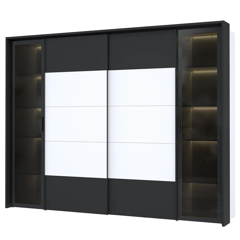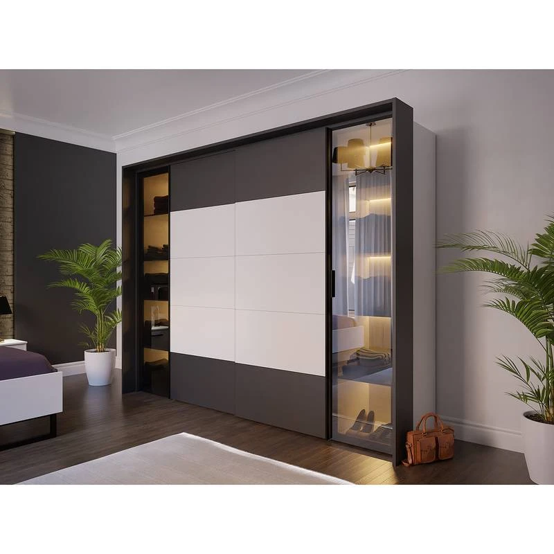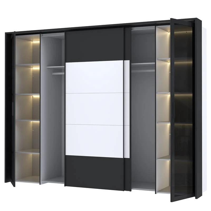 - Contenu de la livraison : Armoire à portes coulissantes avec éclairage inclus, sans accessoires