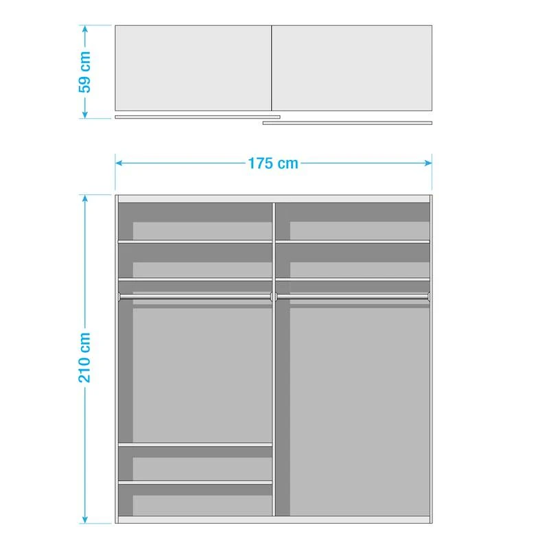 - Contenu de la livraison : Armoire à portes coulissantes avec crochets à vêtements et amortisseurs de porte