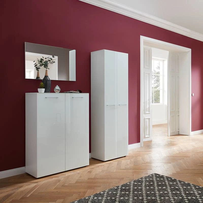 - 2 portes en bois / verre, 1 fond de construction et 4 tablettes