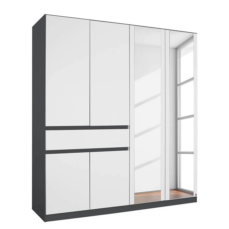- Portes avec miroir et tiroirs avec poignées encastrées