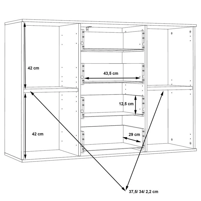 - Dimensions intérieures du tiroir : LxHxP : 43,5 x 29 x 12,5 cm