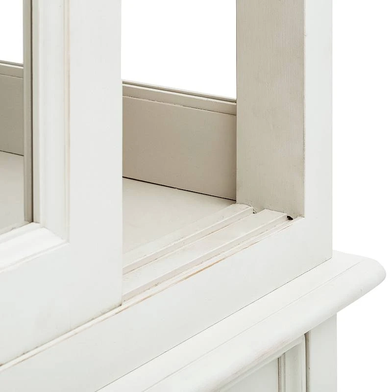 - 2 portes vitrées coulissantes, chacune avec 2 étagères en bois
