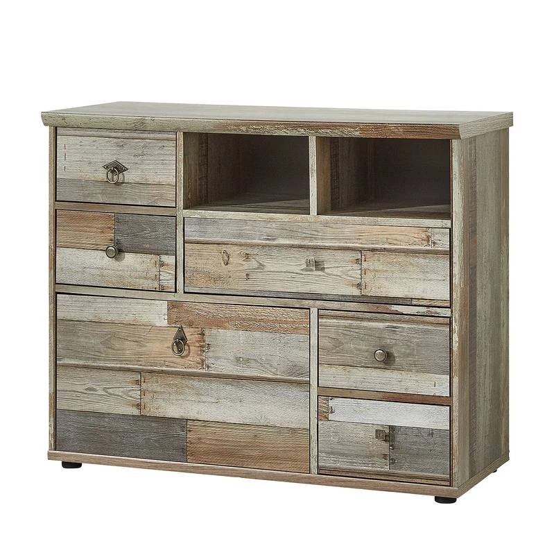 - 1 abattant, 5 tiroirs et 2 compartiments ouverts