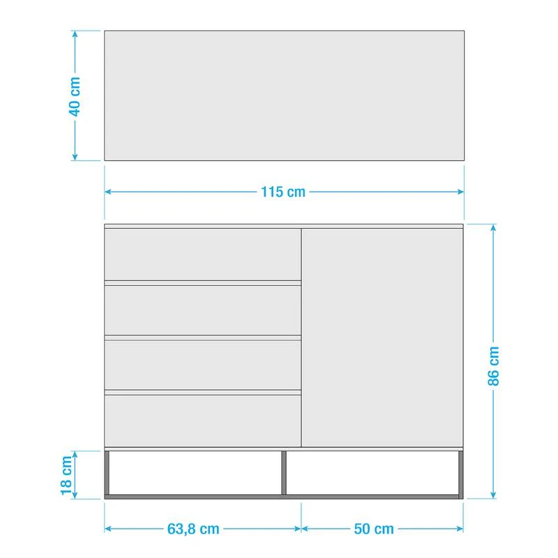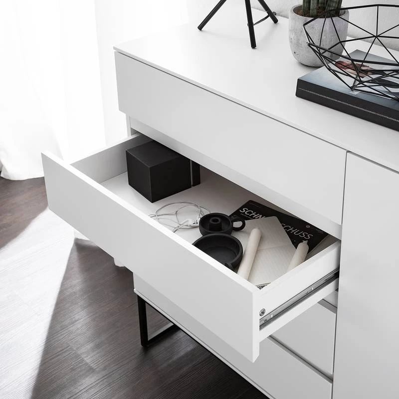 - Façade et corps : MDF (panneau de fibres à densité moyenne) verni
