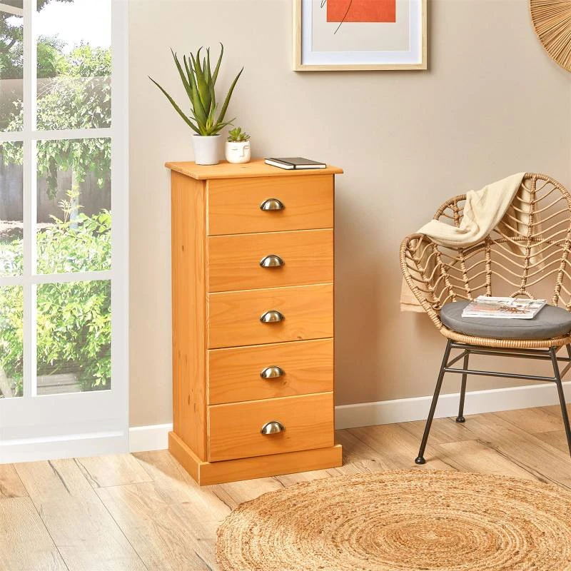 - Contenu de la livraison : 1 x PARIS Chiffonnier 5 tiroirs en pin