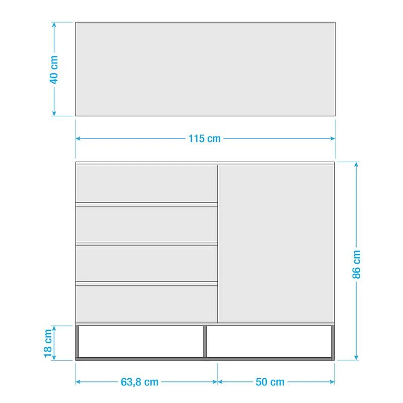 - Façade et corps : MDF (panneau de fibres à densité moyenne) contreplaqué