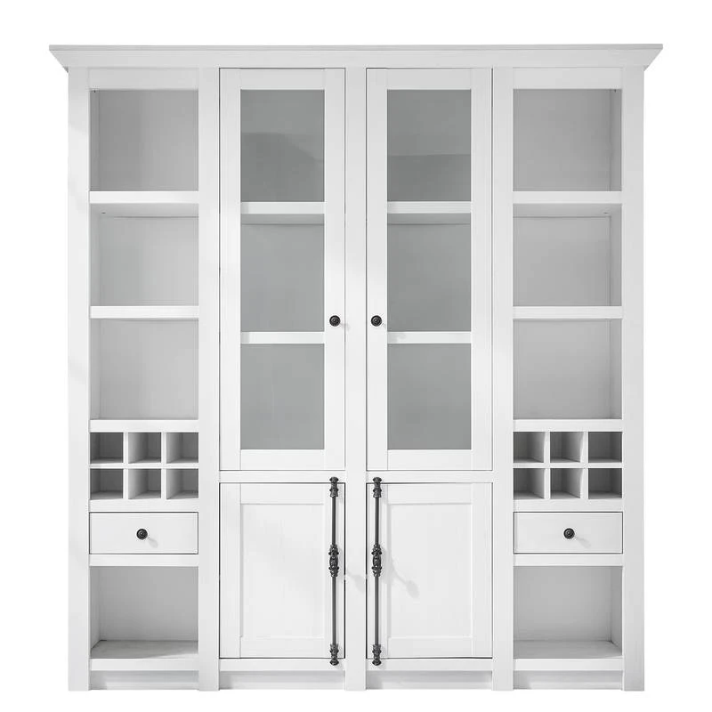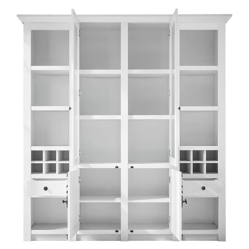 - 2 portes en bois vitrées, renfermant chacune 2 étagères fixes