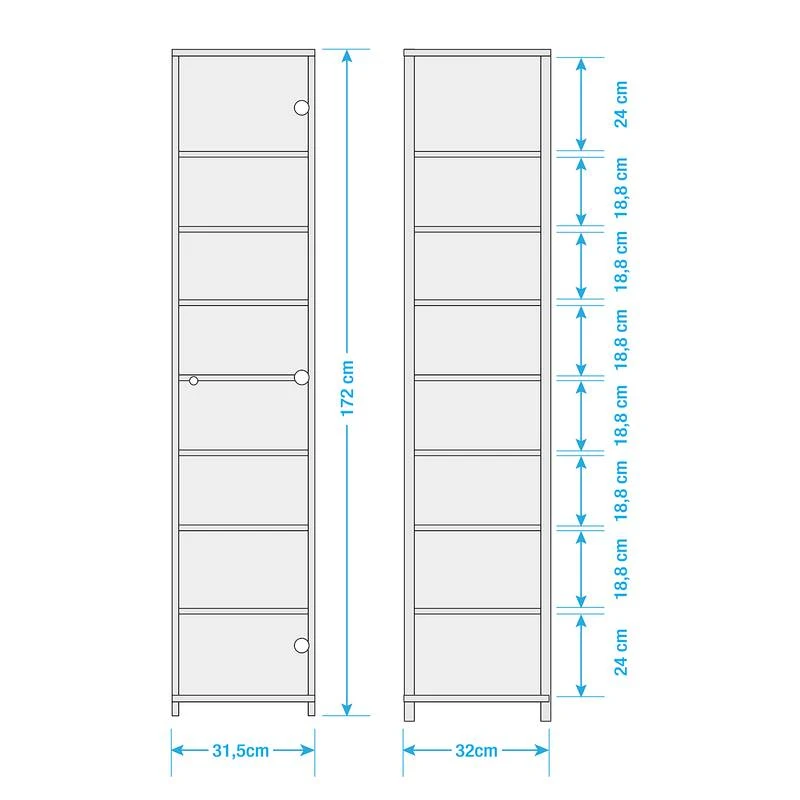 - Épaisseur du verre de la porte et des étagères : 4 mm